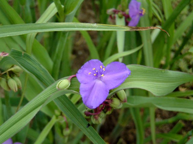北アメリカの原産といわれているムラサキツユクサは3弁の紫青色の花をつけ、